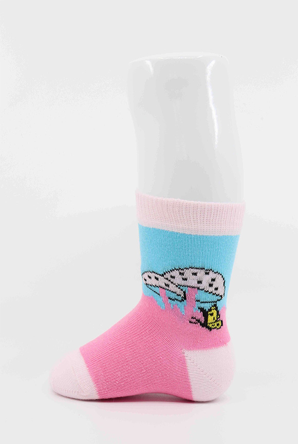 Pembe Mantar Desenli Kız Bebek Soket Çorap