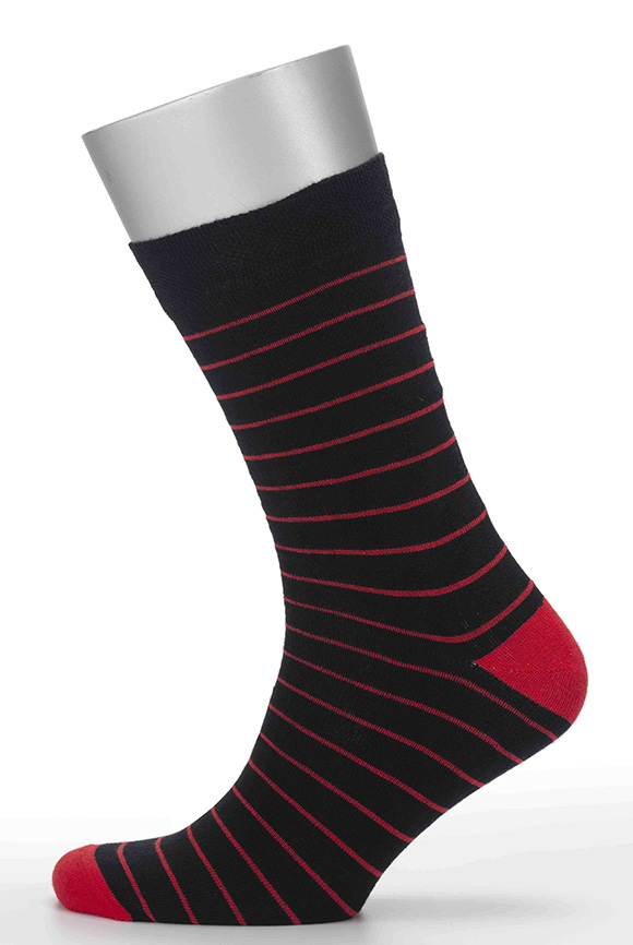 Siyah Kırmızı Çizgili Erkek Soket Çorap