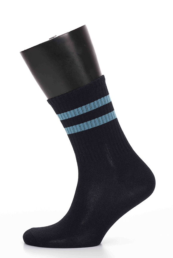 Siyah Mavi Çizgili Erkek Soket Çorap