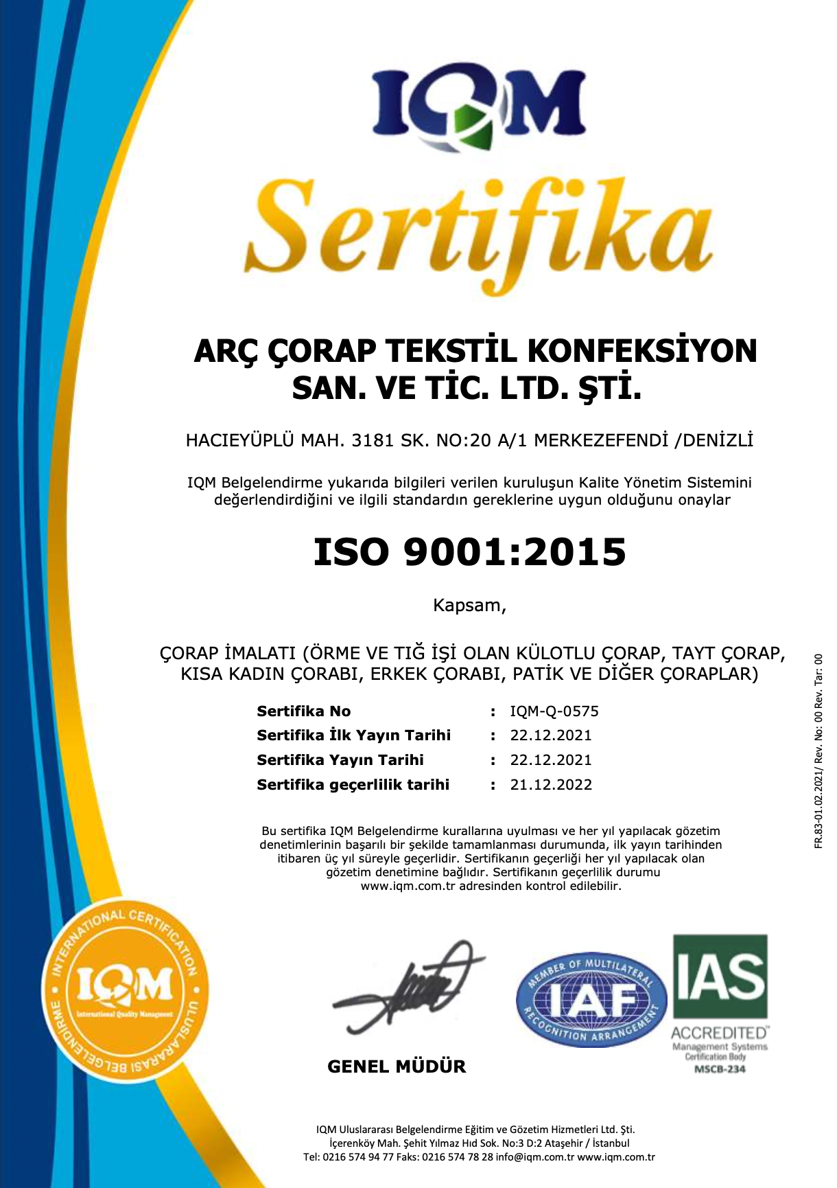 ARC ÇORAP TEKSTİL LTD. Şirketi Denizli’de çorap üretimi yapan ve bu alanda 20 yıldan fazla deneyime sahip bir firmadır. Fabrikamız 50’den fazla kalifiye çalışanı ve mühendis takımı ile üstün teknoloji üretim hatlarına sahip 8000 metre kare alana kurulu yapısıyla yıllık 15.000.000 çift çorap üretim kapasitesine ulaşmıştır.