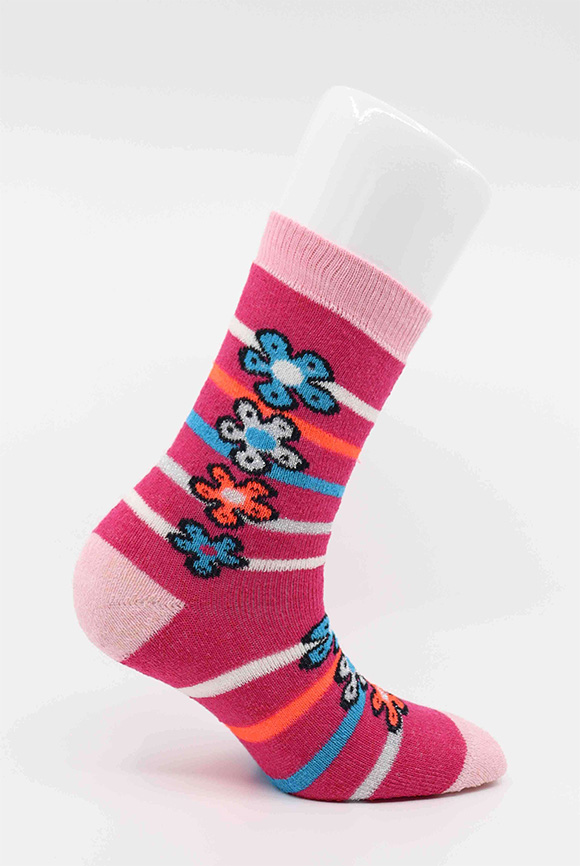 Fuşya Çicekli Çocuk Soket Çorap