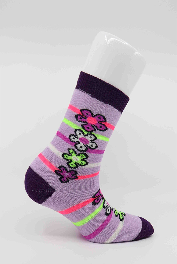 Mor Çicekli Çocuk Soket Çorap