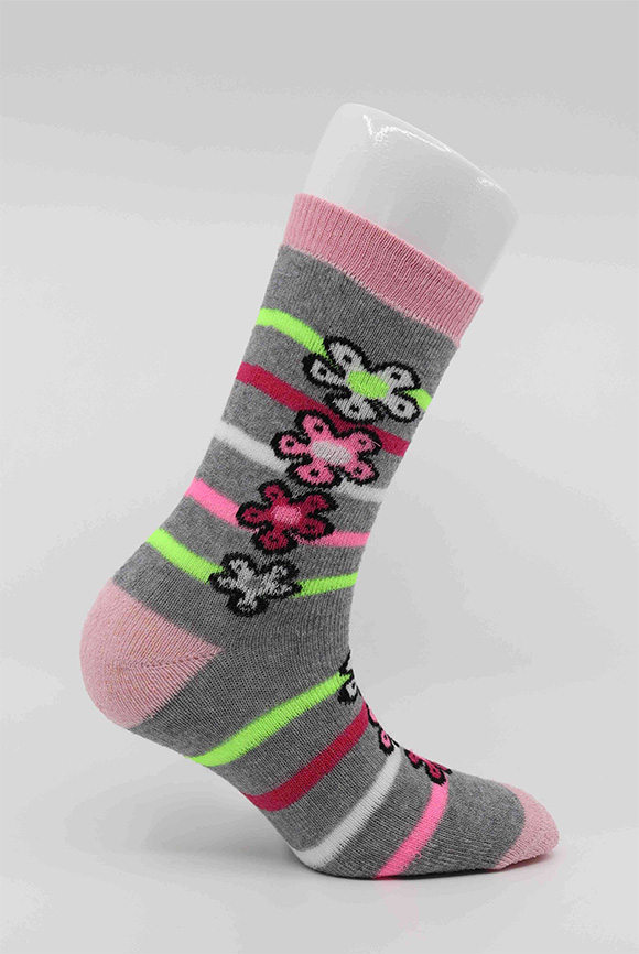 Gri Çicekli Çocuk Soket Çorap